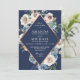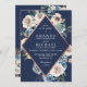 Navy Blue Rose Gold Neutral Floral Wedding Invitation