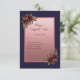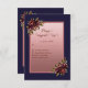 Navy Blue Rose Gold Script Burgundy floral wedding RSVP Card