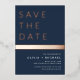 Navy Blue Rose Gold Stripe Save the Date Elegant