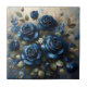 Navy Blue Roses Gold Gilding Impressionist Art Tile