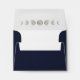 Return address, rsvp envelope. Envelope colour, shown in trendy navy blue, can be customized. Envelope features, elegant watercolor gilded moon phases on back flap and inside lining.