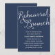 This elegant rehearsal brunch invite features rustic white calligraphy and a crisp navy blue background.