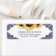 Personnalisez ces étiquettes d'adresse de retour rustique chic bleu marine pour votre pays rustique, jardin, jardin ou grange mariage inspiré des fleurs de tournesol. Objets correspondants disponibles pour compléter ces étiquettes d'adresse de retour chic et bleu marine mariage.
