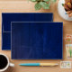 Rustic navy blue wood and sunflowers fall wedding envelopes