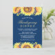 Navy Blue Rustic Sunflowers Thanksgiving Dinner Invitation