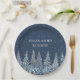 Navy Blue Rustic Winter Forest Wedding Paper Plate