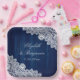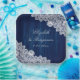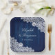 Navy Blue Rustic Wood Lace String Lights Wedding Paper Plate