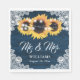 Navy Blue Rustic Wood Lace Sunflower Wedding Napkin