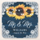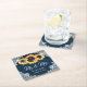 Navy Blue Rustic Wood Lace Sunflower Wedding Square Paper Coaster