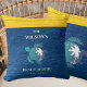 Customize this Navy Blue Beach House Throw Pillow with your Family Name, a perfect blend of Coastal charm and Chic elegance. At the forefront of this design is a captivating Light Blue Sea Turtle, against a Rustic Wood background. The Navy Blue and Yellow hues evoke the calming tones of the Sea and the sun-kissed Coast, creating a serene atmosphere within your home. Also perfect as a Beach Housewarming gift.
