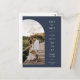 Navy Blue Script Arch Photo QR Code Save the Date Postcard