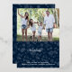 Navy Blue Script Bokeh Merry Christmas Photo Foil Holiday Card