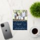 Rich navy blue with gold hand-written look lettering and soft bokeh bubbles background, add your family photo to this crisp, Classy and elegant fancy script text "merry" Christmas. Greet your family and friends with class and sophistication this holiday season with this stylish flat greeting card.