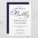 Navy Blue Script Brunch And Bubbly Bridal Shower Invitation