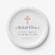 Navy Blue Script Religious Cross First Communion Paper Plate