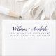 Simple, modern and chic wedding return address label with your names in navy blue elegant handwritten script calligraphy on a white background. Simply add your names and address. Exclusively designed for you by Happy Dolphin Studio. If you need any help or matching products please contact us at happydolphinstudio@outlook.com. We're happy to help you make your wedding the most beautiful day!