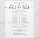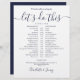 This stylish navy blue and white wedding schedule timeline can be personalised with your wedding details in chic lettering. Designed by Thisisnotme©