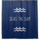 Simple but true, this Navy Blue Seas the Day Waves Nautical shower curtain is the perfect way to bring the sun and sand into your home without the mess. Great gift for any sailor or beach lover for either their beach house, the boat, or their main home.