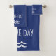 Navy Blue Seas the Day Waves Nautical Bath Towel Set