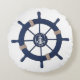 Navy blue ship wheel round pillow. Boat helm nautical beachy home decor.