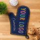 Customize our oven mitt with your company logo. You can optionally personalize it with a name to make it an extra special gift. It’s canvas on the printed side and non slip black silicone or quilted silver on the heat resistant side. Designed in navy blue and other colours (all colours are customizable). No minimum order quantity and no setup fee.