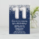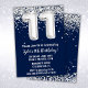 Navy blue and silver 11th Birthday invitation 11 birthday party invitation for a black white silver with modern script writing and fun foil balloons.