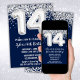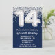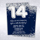 Navy blue and silver 14th birthday party invitation 14 birthday party invitation for a boy or girl with modern script writing and fun foil balloons.