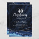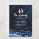 Navy Blue Silver Agate 40th Birthday Invitation