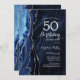 Navy blue and silver agate 50th birthday party invitation. Elegant modern design featuring royal blue watercolor agate marble geode background, faux glitter silver and typography script font. Trendy invite card perfect for a stylish women's bday celebration. Printed Zazzle invitations or instant download digital printable template.