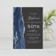 Navy Blue Silver Agate Dark 50th Birthday Party Invitation