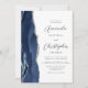 Navy Blue Silver Agate QR Code Wedding Invitation