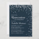 Navy Blue Silver Diamond Confetti Quinceañera Invitation
