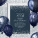 Navy Blue Silver Diamond Glitter 100th Birthday Invitation