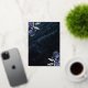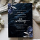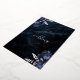 This elegant wedding invitation features navy blue floral bouquets set off with silver faux foil greenery in two corners, on a background image of navy blue watercolor agate. The customizable text combines real silver foil serif, italic and handwriting fonts. The reverse side features a matching navy blue and silver floral and agate design.