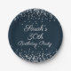 Navy Blue Silver Glitter 30th Birthday Party Paper Plate