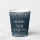 Classic and elegant navy blue with silver glitter 40th birthday party paper cups. Contact us for help with customization or to request matching products.