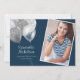 Navy Blue Silver Glitter Balloons Grad Party Photo Invitation