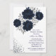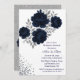 Navy Blue & Silver Glitter Leaves Wedding Shower Invitation