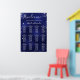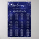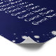 A classic navy blue background, the blue colour is uneven. Decorated with faux silver glitter dust. Personalize and add the name of the bride and groom, add your guests names.