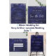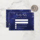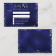A navy blue background, the blue colour is uneven. Decorated with faux silver glitter, sparkles. Personalize and add the reply by date and your names.