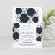 Navy Blue & Silver Leaves Brunch and Bubbly Invitation
