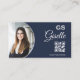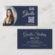 Navy Blue Silver Photo Monogram Realtor QR Code Business Card