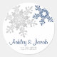 Navy Blue Silver Snowflake Wedding Classic Round Sticker