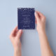 A navy blue background, decorated with faux silver stars. Personalize and add your names and details.