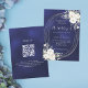 Navy blue silver white florals wedding QR RSVP Invitation