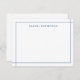 Personalized custom name note cards with a thin navy blue border with overlapping square design in two corners - a unique and modern take on the classic professional personal stationery card that's perfect for the office, teen and tween boys, college notes, and as party and bar mitzvah thank you cards.