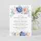 Navy Blue Slate Dusty Blush Pink Floral Wedding Invitation