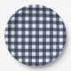 Navy Blue Small Classic Gingham Check Plaid Paper Plate