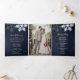 Navy Blue Snowflake Winter Photo Wedding Tri-Fold Program with front and back photos