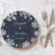 Navy Blue Snowflakes Winter Wedding Paper Plate
